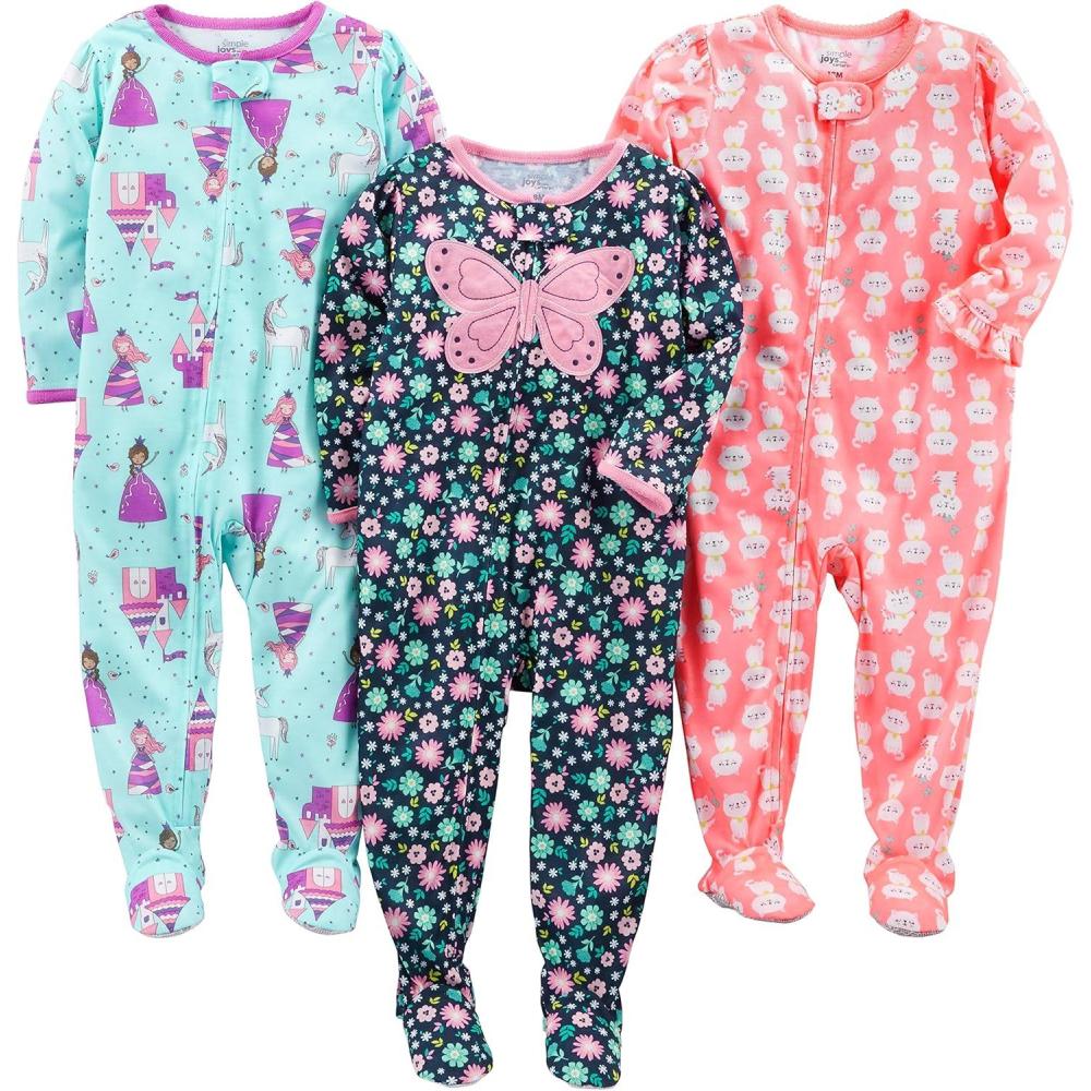 imageSimple Joys by Carters Baby and Toddler Girls 3 Pack Loose Fit Polyester Jersey Footed PajamasButterflyFairyKitten