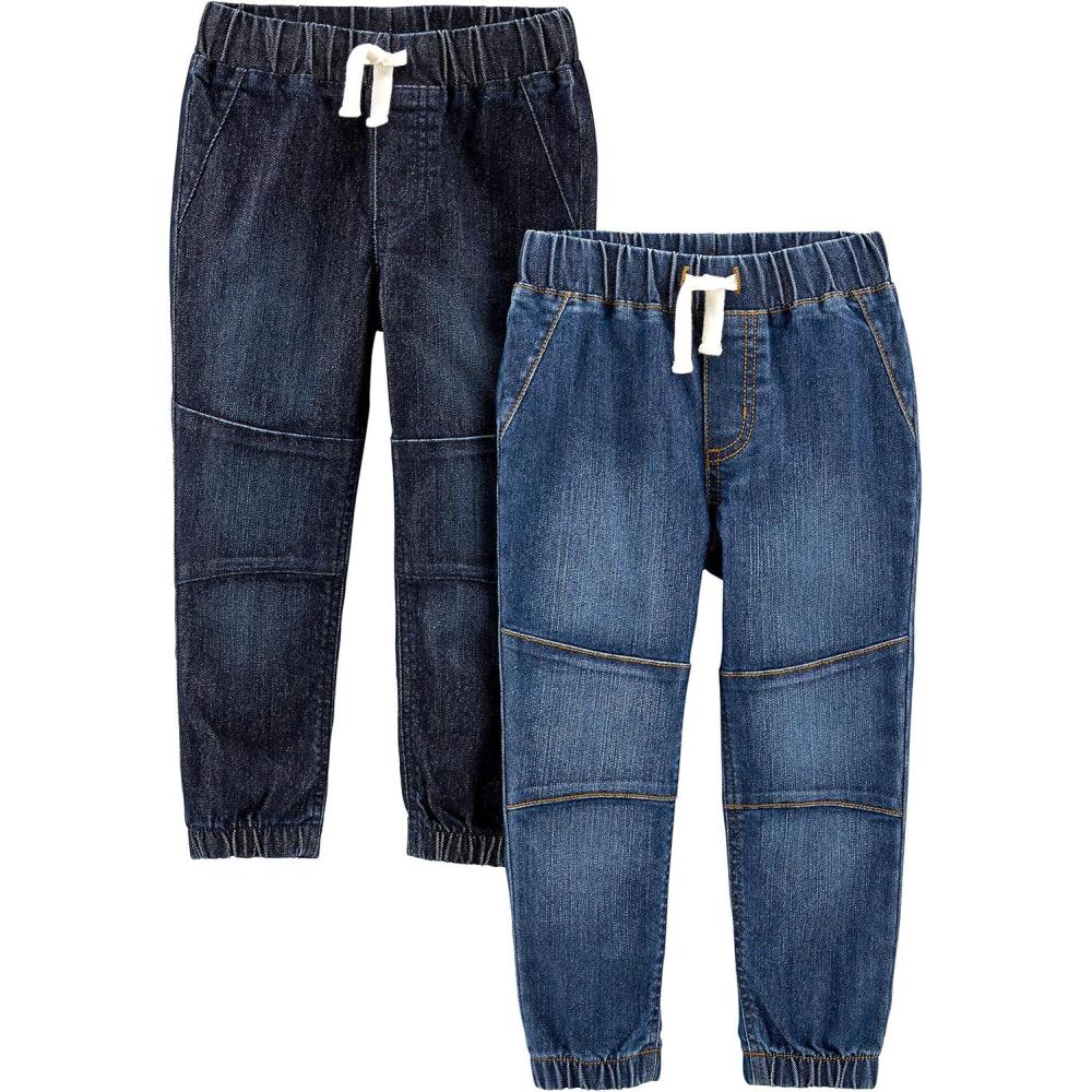 2-pack pull on lightweight denim pants with covered waistbands and functional draw cords.