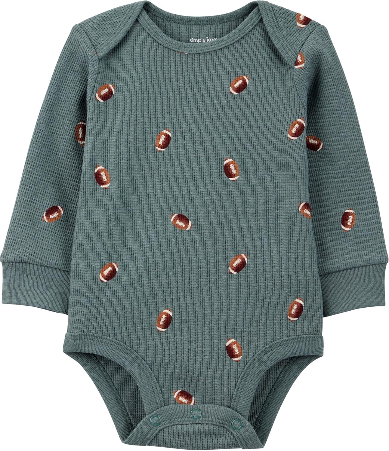 The Simple Joys by Carter's 4-Pack Long Sleeve Thermal Bodysuits are the perfect essential for your baby's everyday wardrobe. Designed with both comfort and practicality in mind, these bodysuits feature a soft, gentle fabric that keeps your little one cozy and comfortable throughout the day. Each bodysuit in the pack is equipped with overlap shoulders, making it incredibly easy to dress and undress your baby without any hassle. The clever design allows for easy pulling down over the body, ensuring a smooth and quick change, especially during those diaper emergencies. The long sleeves provide the right amount of coverage for cooler weather, offering your baby a full range of motion without overheating. Available in a variety of versatile colors and patterns, these bodysuits are perfect for layering or wearing alone for a simple, cute look. The tagless design adds an extra touch of comfort by eliminating any potential irritation, and the durable fabric holds up to repeated washing, making these bodysuits a practical choice for busy parents. Whether for playtime or naptime, the Simple Joys by Carter's bodysuits are a dependable and comfortable option for your baby's everyday needs.