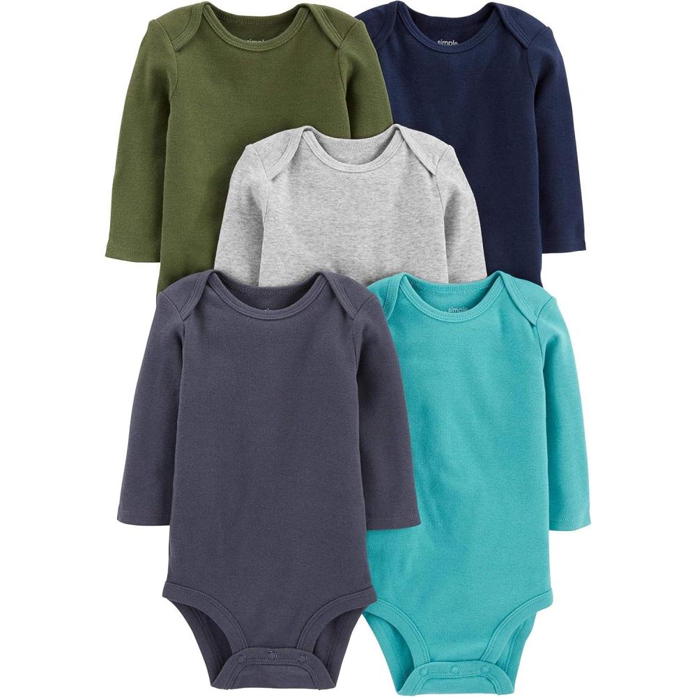Simple Joys by Carter’s Baby-Boys Long-Sleeve Bodysuit Pack of 5Bodysuit(Blue/Grey Heather/Navy/Olive/Washed Navy)