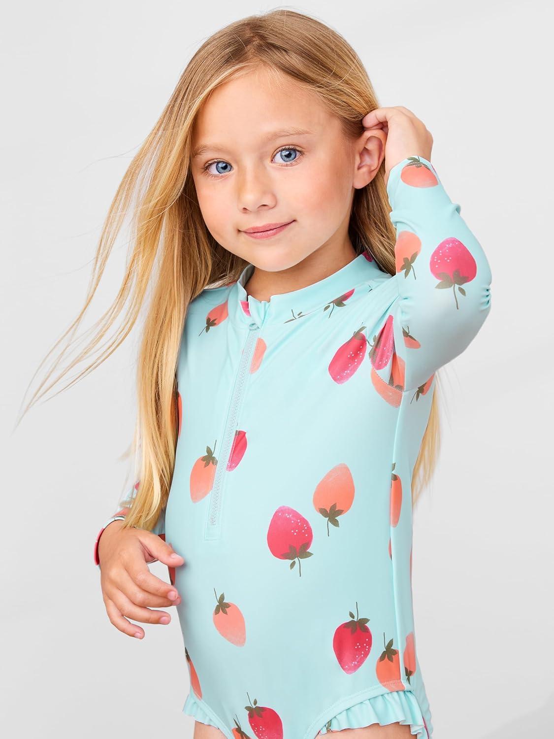 Simple Joys by Carter’s Baby-Girls Long Sleeve Zipper One Piece Swimsuit(Blue Strawberry)