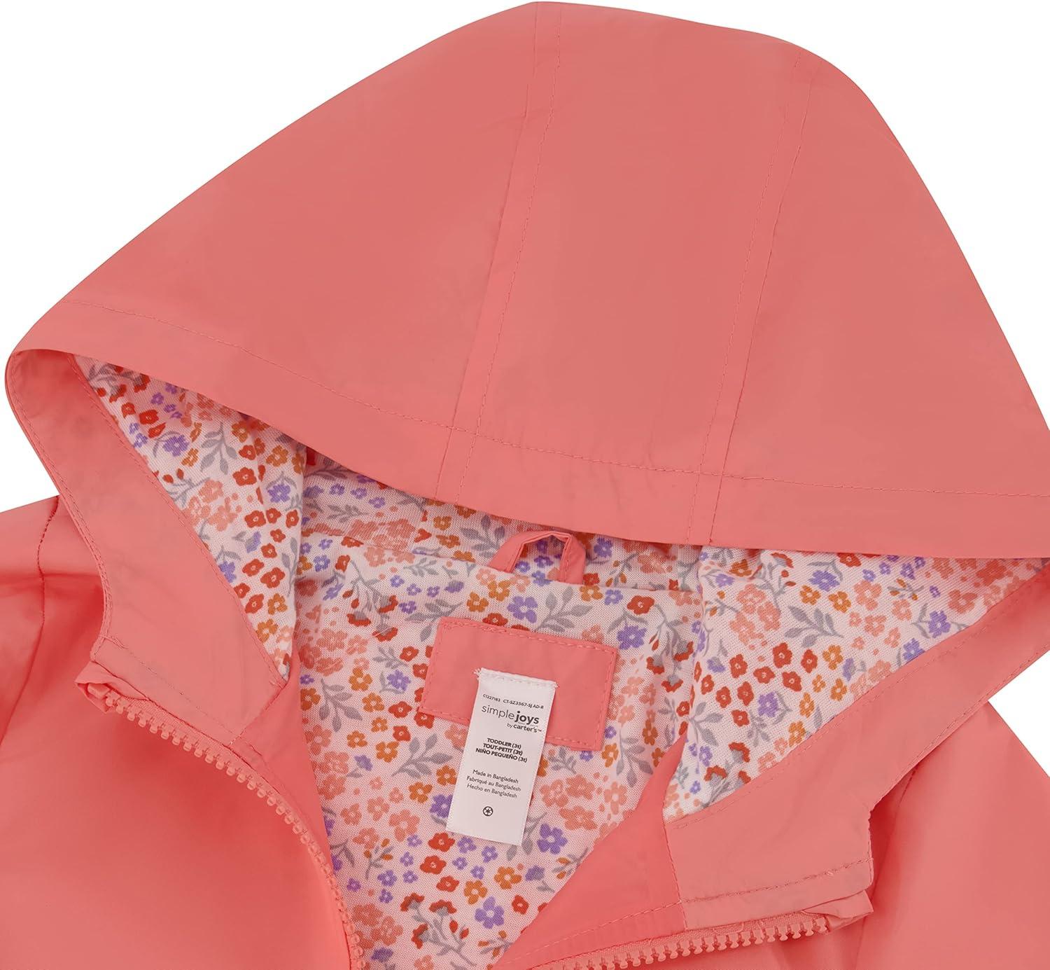 imageSimple Joys by Carters Baby Girls Rain Jacket Raincoat WaterResistant Hooded Rain Slicker for 2T8 yearsPink Floral