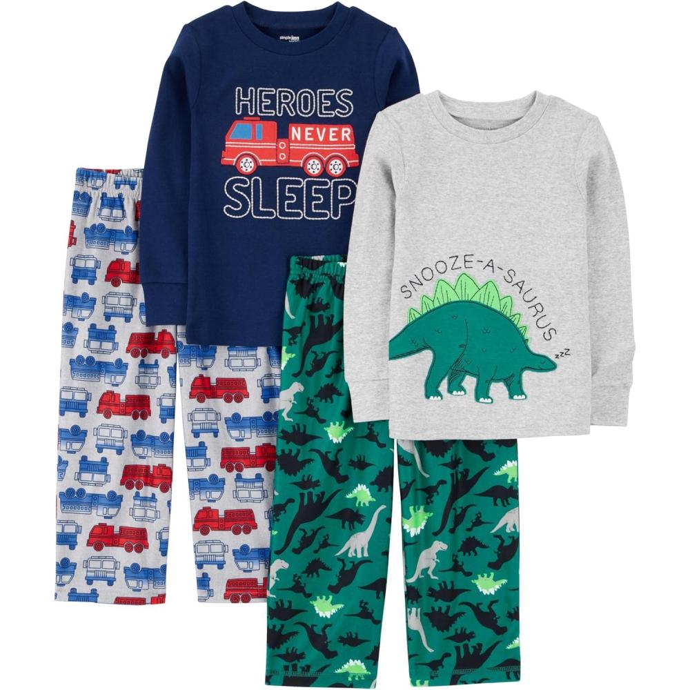 Simple Joys by Carter's boys 4-piece Pajama Set(Grey/Green Dinosaur/Firetruck/Heroes)