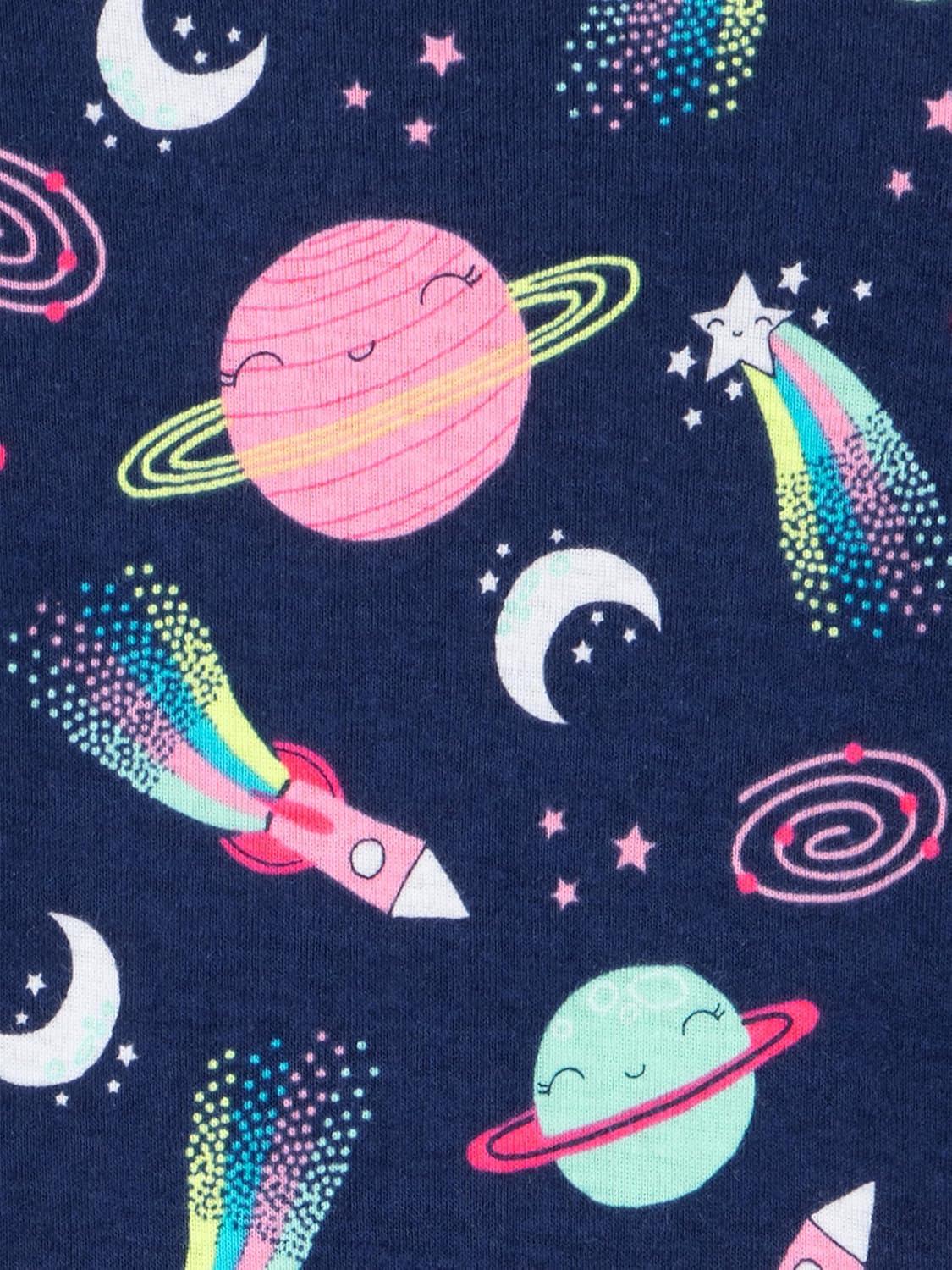 Simple Joys by Carter’s Girls’ 3-Pack Snug Fit Footed Cotton Pajamas(Navy Space/White Dinosaur/Yellow Dots)