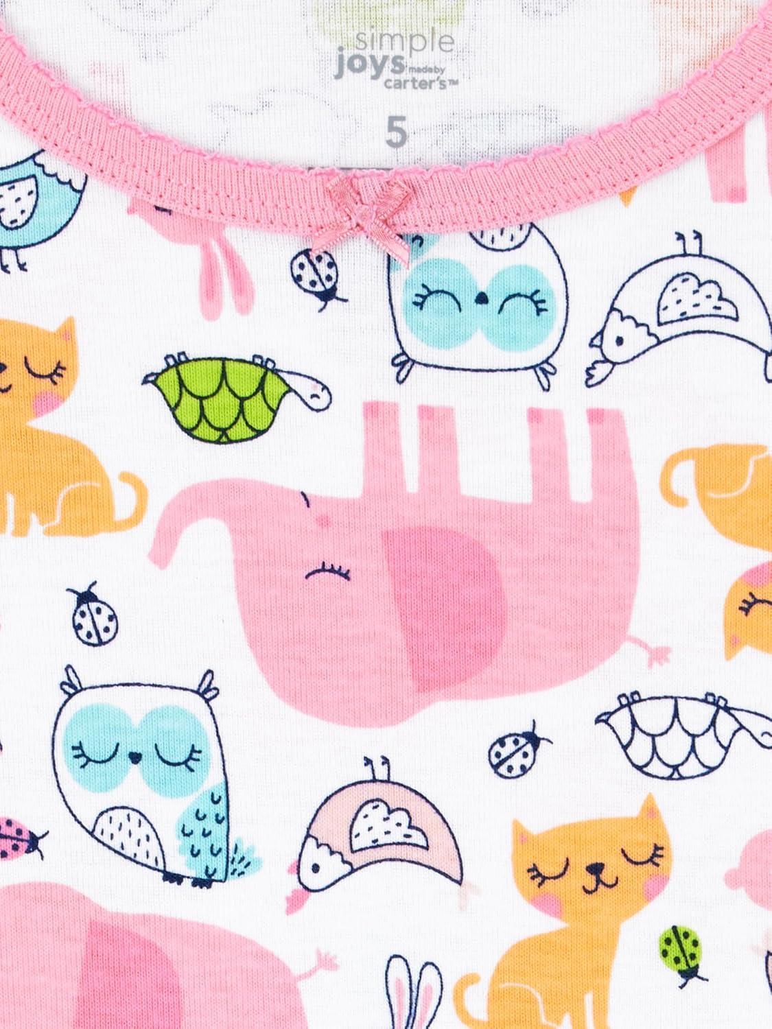 Simple Joys by Carter's girls 6-piece Snug Fit Cotton Pajama Set(Blue Bunny/Pink Dots/White Forest Animals)