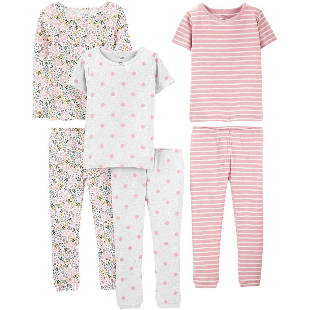 imageSimple Joys by Carters girls 6piece Snug Fit Cotton Pajama SetGrey DotsPink StripeWhite Ditsy Floral