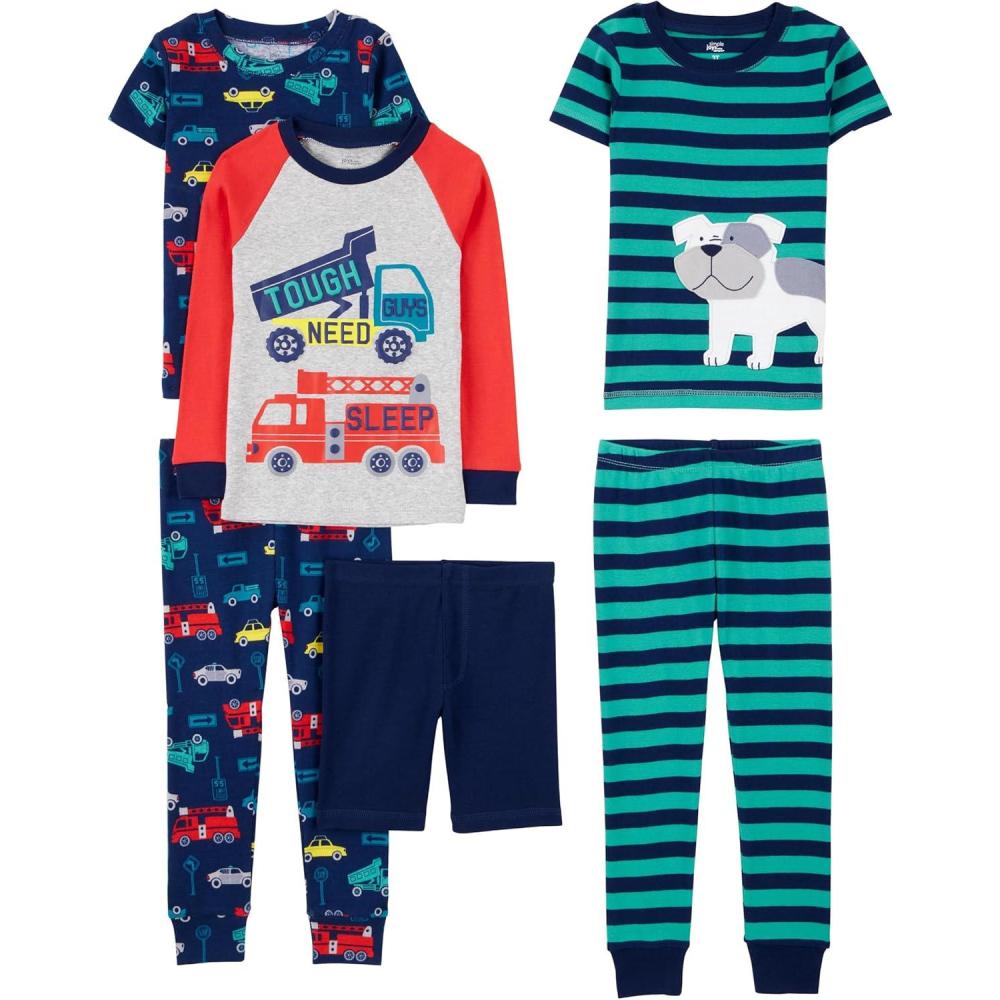 Simple Joys by Carter’s girls 6-piece Snug Fit Cotton Pajama Set(Multicolor/Cars/Dog/Firetruck/Stripe)
