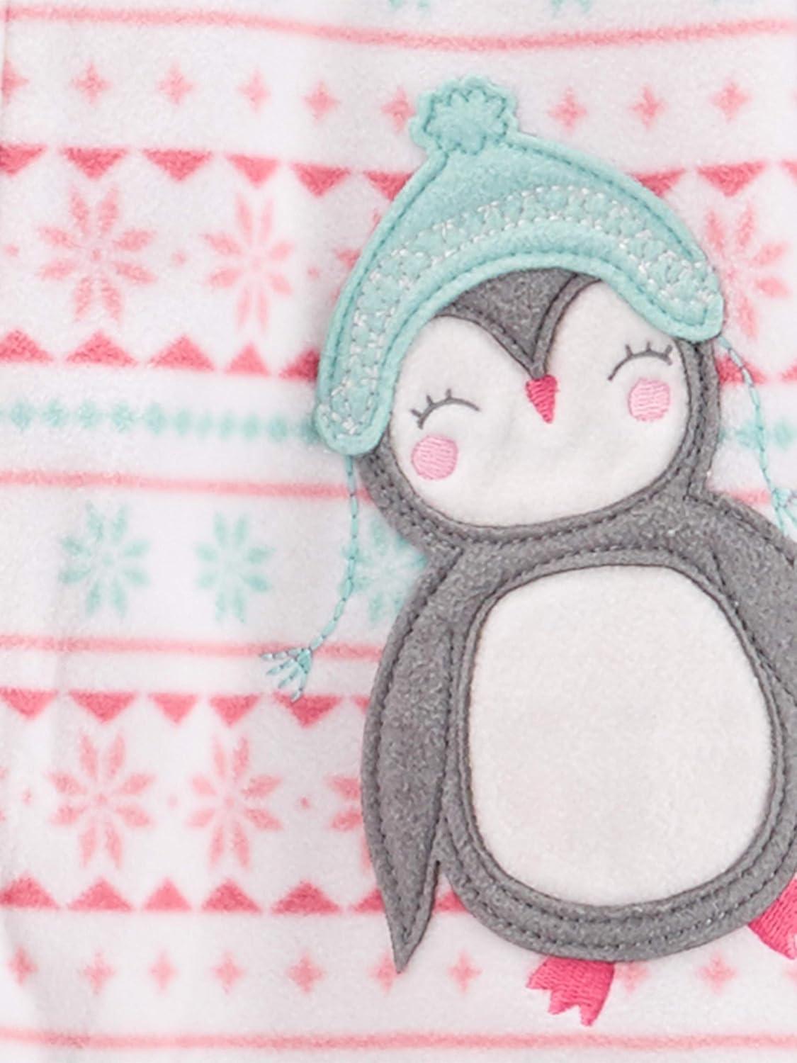 Simple Joys by Carter’s girls Loose-Fit Flame Resistant Fleece Footed Pajamas(Blue Penguin/Green Pig/Pink Fox)