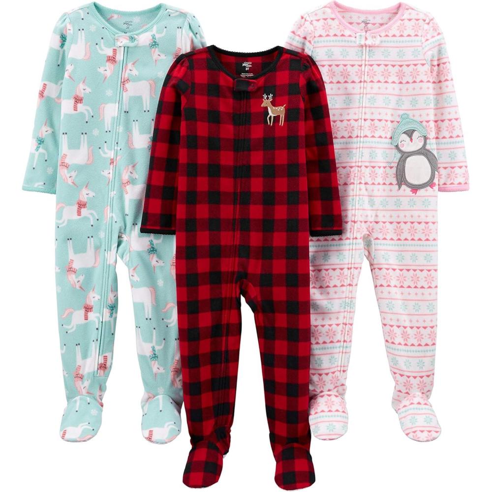 imageSimple Joys by Carters girls LooseFit Flame Resistant Fleece Footed PajamasBuffalo CheckPenguinUnicorn