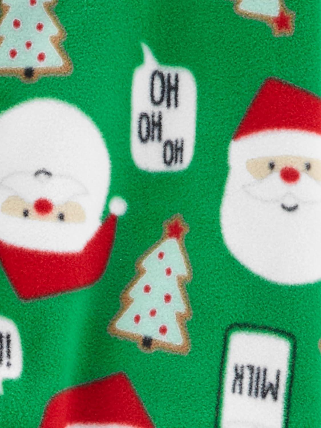 Simple Joys by Carter's unisex-child Holiday Loose-fit Flame Resistant Fleece Footed Pajamas(Green Santa/Grey Heather Reindeer)