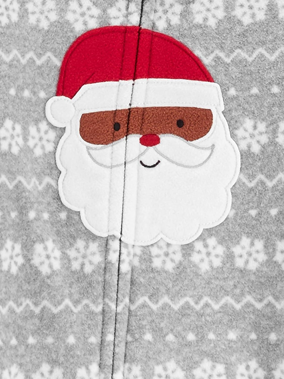 Simple Joys by Carter’s unisex-child Holiday Loose-fit Flame Resistant Fleece Footed Pajamas(Light Grey Santa/Mint Green Christmas Print)